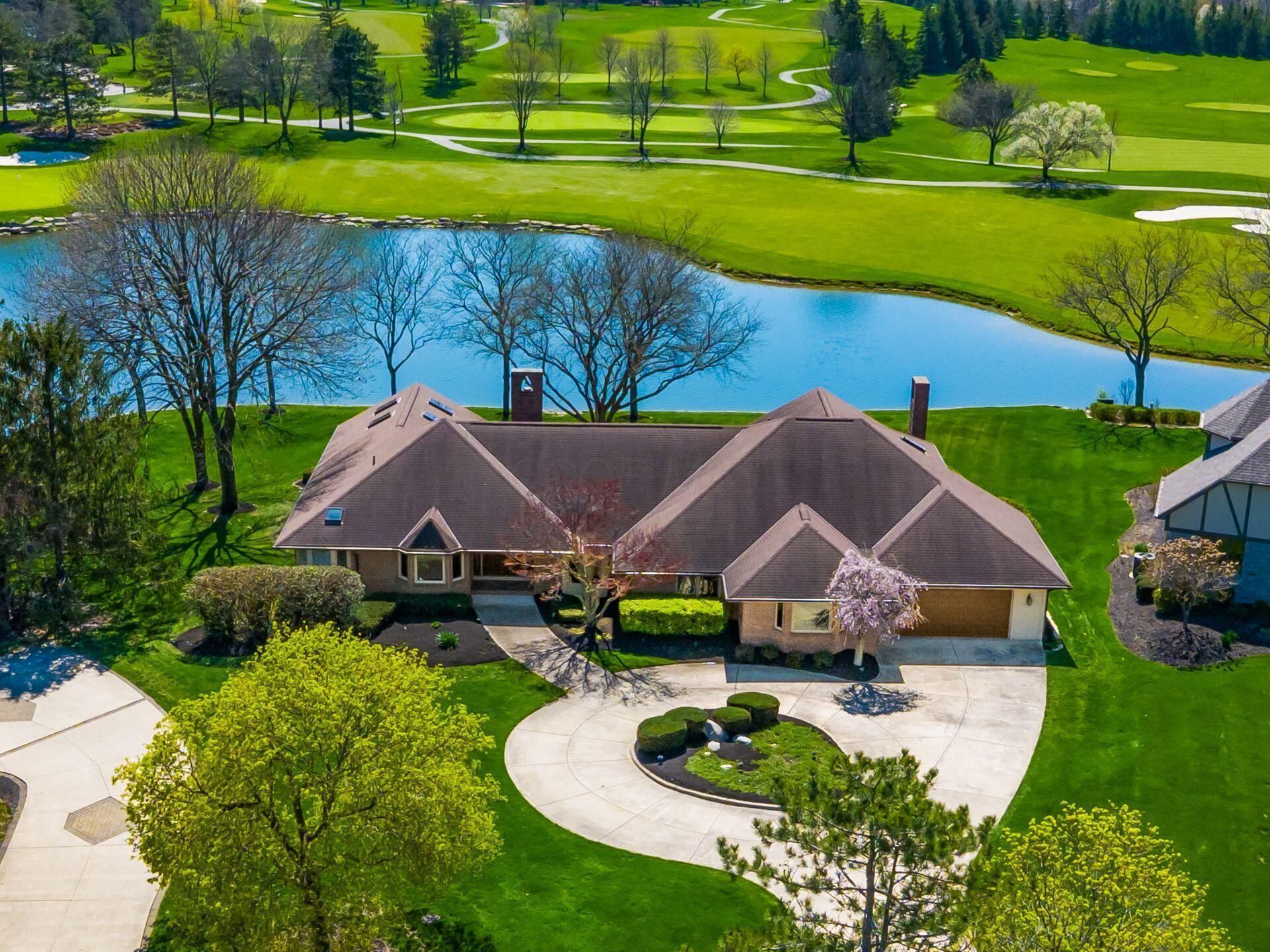 Incredible opportunity to own this all-brick home overlooking the 18th green of the Muirfield Country Club Golf Course. Set on a generous 0.71-acre cul-de-sac lot, this property delivers outstanding, uninterrupted views, framed by a tranquil pond that spans the full length of the backyard. Take in the scenery year-round from the screened porch or the four-season room, complete with an eight-person hot tub. The well-appointed kitchen is designed for everyday ease and effortless entertaining, featuring granite and Corian countertops, double ovens, a Sub-Zero refrigerator, and a gas cooktop. The sunlit family room showcases vaulted ceilings and a classic brick fireplace, while an adjacent entertaining area includes wine and beverage refrigerators plus a sink for seamless hosting. A dedicated office and a second living room provide flexible space for work, relaxation, or guests. The home offers four bedrooms, with three conveniently located on the main level and a private upstairs retreat with its own full bath. With four full bathrooms and an additional half bath, there's ample comfort for residents and visitors alike. A large unfinished basement provides excellent potential for future living space, recreation, or storage. The home is ADA compliant for accessibility and is being sold As Is. This is a rare combination of premier location, panoramic views, and privacy--plus all that Muirfield Village has to offer, including over 29 miles of private paved pathways for walking or biking, pools, tennis courts, playgrounds, and 250 acres of beautifully maintained common grounds.